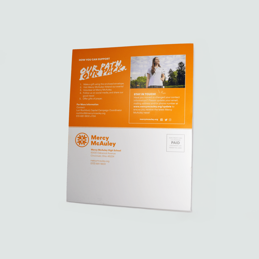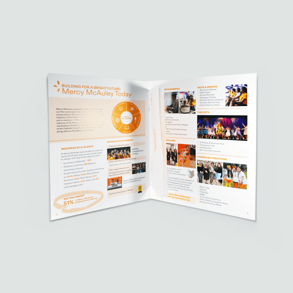 For Mercy McAuley High School, a fundraising piece needed to do more than inform. It needed to inspire action. Evolution creative solutions produced a high-impact booklet that engaged donors from the moment it arrived. The piece earned a Bronze award in Booklets (larger than 6″ x 9″) from the Graphic Media Alliance Print Excellence Awards.