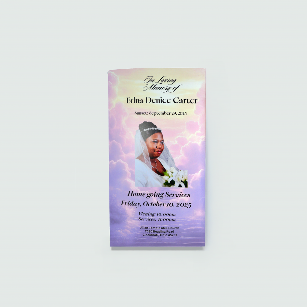 Funeral materials call for a careful balance of clarity, beauty and respect, often within a tight timeline. Evolution creative solutions partnered closely with the family to create a program that reflected the life being celebrated while guiding attendees through the service.