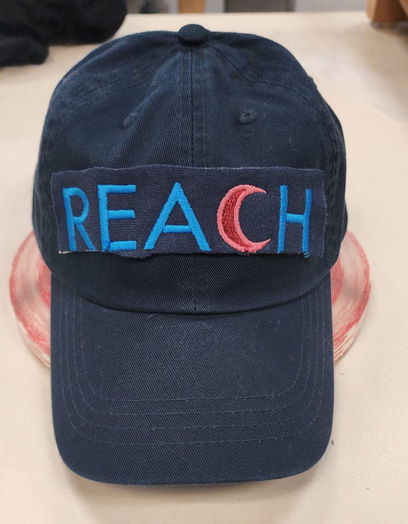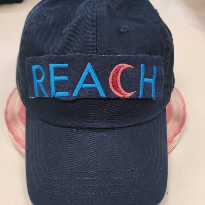 Branded apparel is an effective outreach tool, but shirts can be hidden under coats or lost in a crowd. Hats, on the other hand, rise above the crowd and are visible from a distance. The Sickle Cell Program needed professional, durable hats true to the REACH brand. Matching the bright colors of the program’s logo on a navy cap required careful thread selection and embroidery precision.