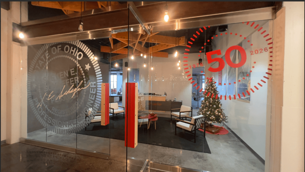 For 50 years, Schaefer has engineered structures built to stand the test of time. To mark that milestone, the structural engineering firm partnered with Evolution creative solutions to transform an office window into a strategic communication tool with a professionally produced, installed large-format decal.